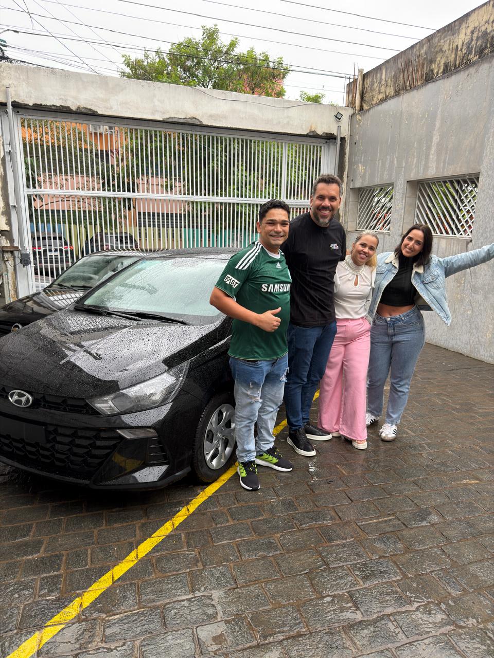 Prêmios entregues pessoalmente na porta do ganhador com registro público.